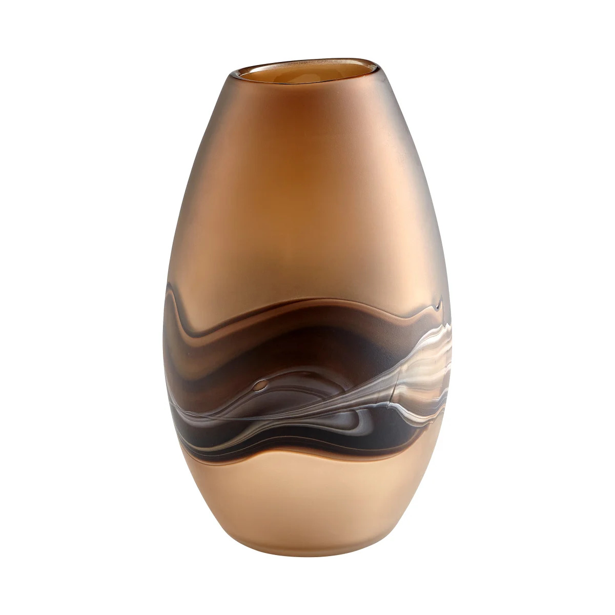 Add an abstract design to your tabletop ensemble with the Nina vase. Available in three different size options, these organic and earth toned accents feature a swirled matte glass surface, that blends brown and khaki tones from top to bottom. These contemporary vessels are ideal for your spring floral arrangements. Perfect for any style design: contemporary, traditional, or transitional, these glassware pieces will fit your needs.
