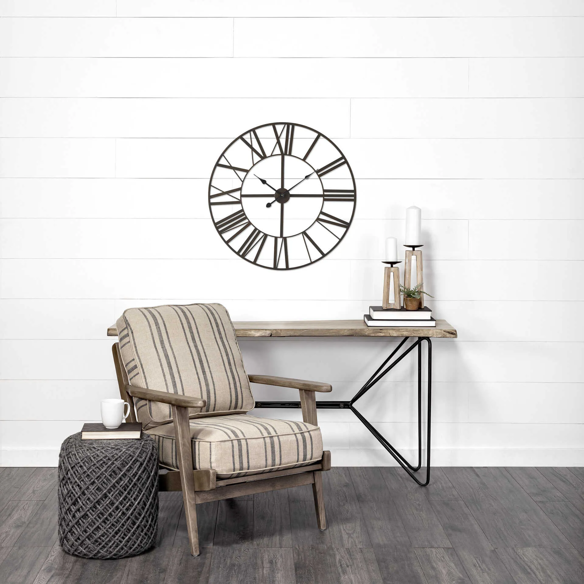 Pender is a 30" round wall clock made from solid iron and finished in an unfussy matte black color.