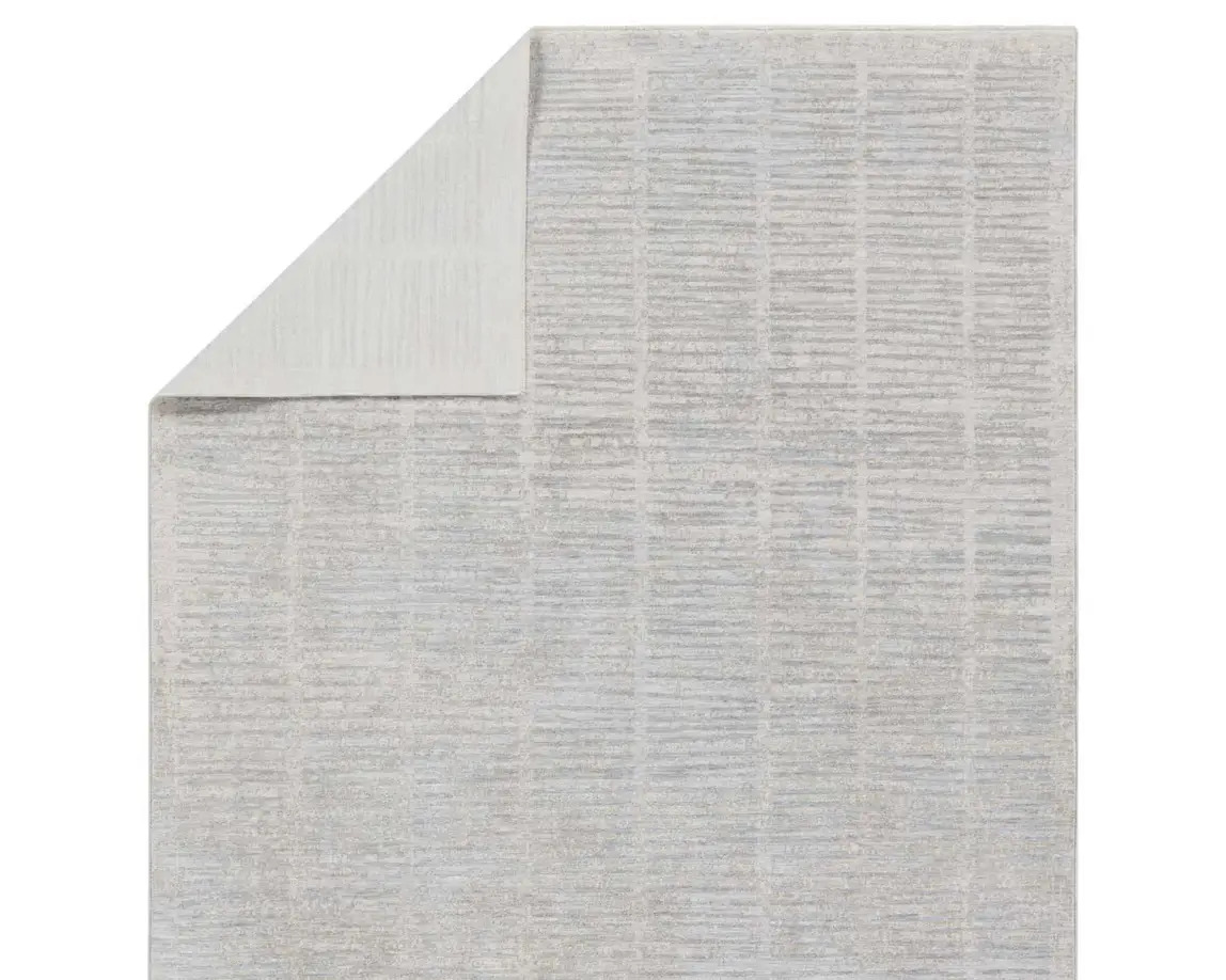 The Ballad collection features soft luxurious pile and serene, dimensional colorways created by the space-dyed yarns. The Dounia area rug boasts a subtly striped pattern that complements transitional and contemporary spaces with grounding tones of light gray, blue, cream, and beige. Perfect for heavily trafficked spaces, this indoor, polyester rug is easy to clean and ideal for homes with pets and children.