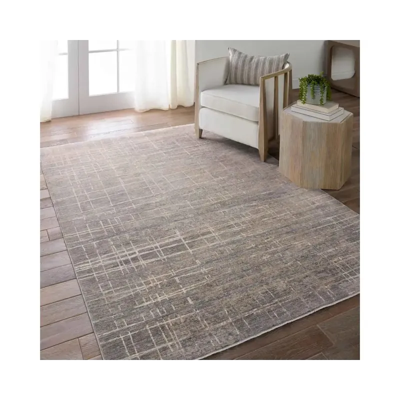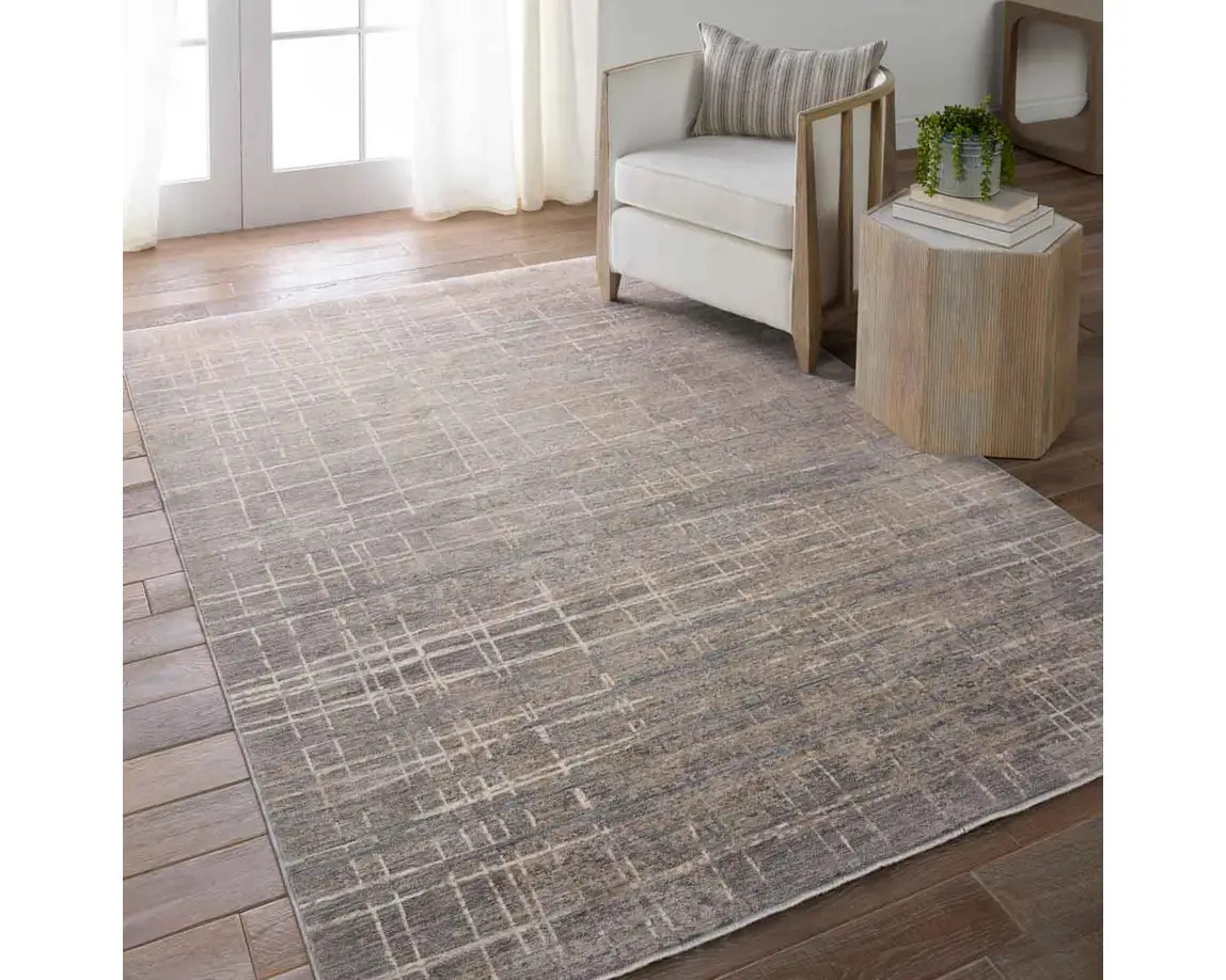 The Ballad collection features soft luxurious pile and serene, dimensional colorways created by the space-dyed yarns. The Pinon area rug boasts an abstract striped pattern that complements transitional and modern spaces with grounding tones of silver, taupe, blue, cream, and beige. Perfect for heavily trafficked spaces, this indoor, polyester rug is easy to clean and ideal for homes with pets and children.
