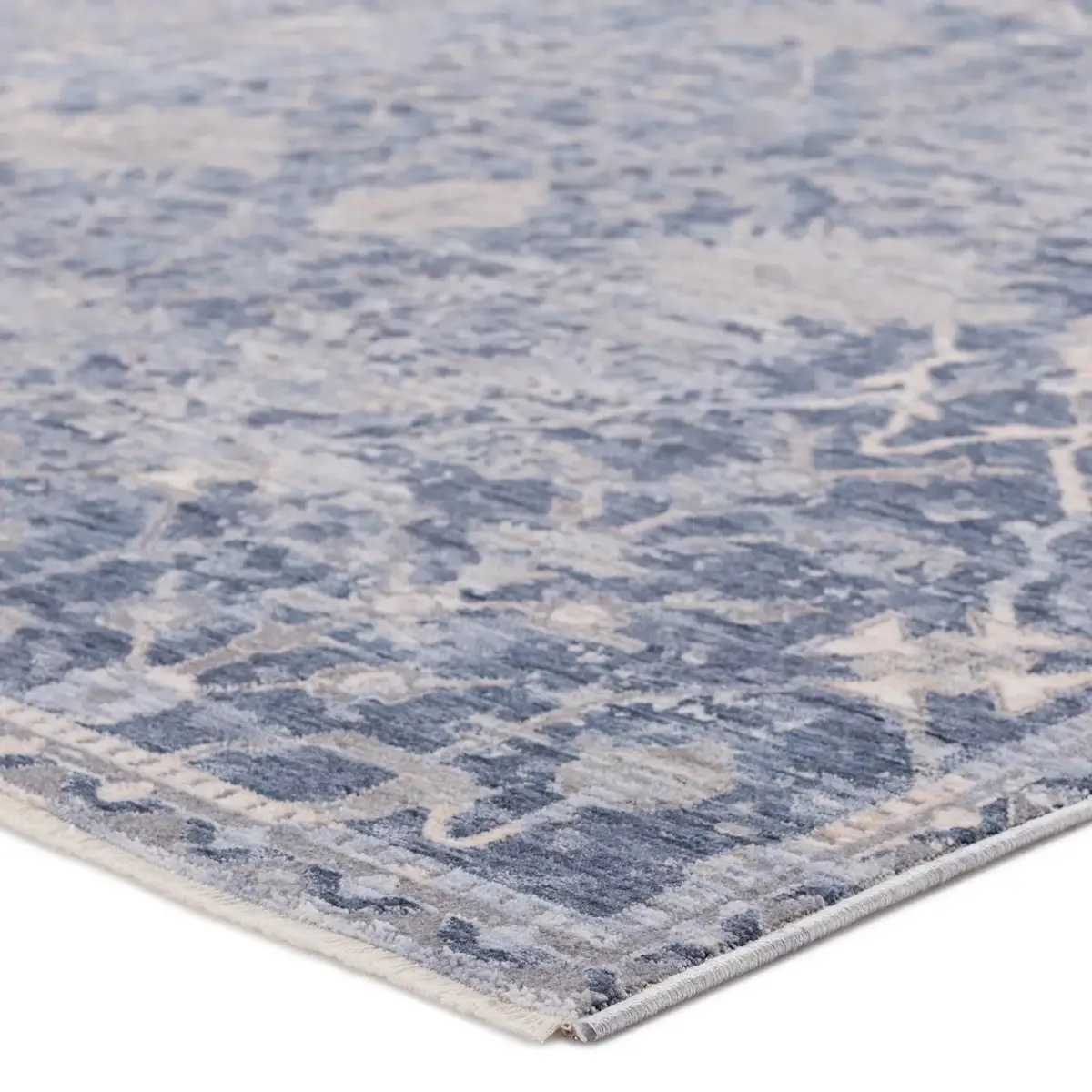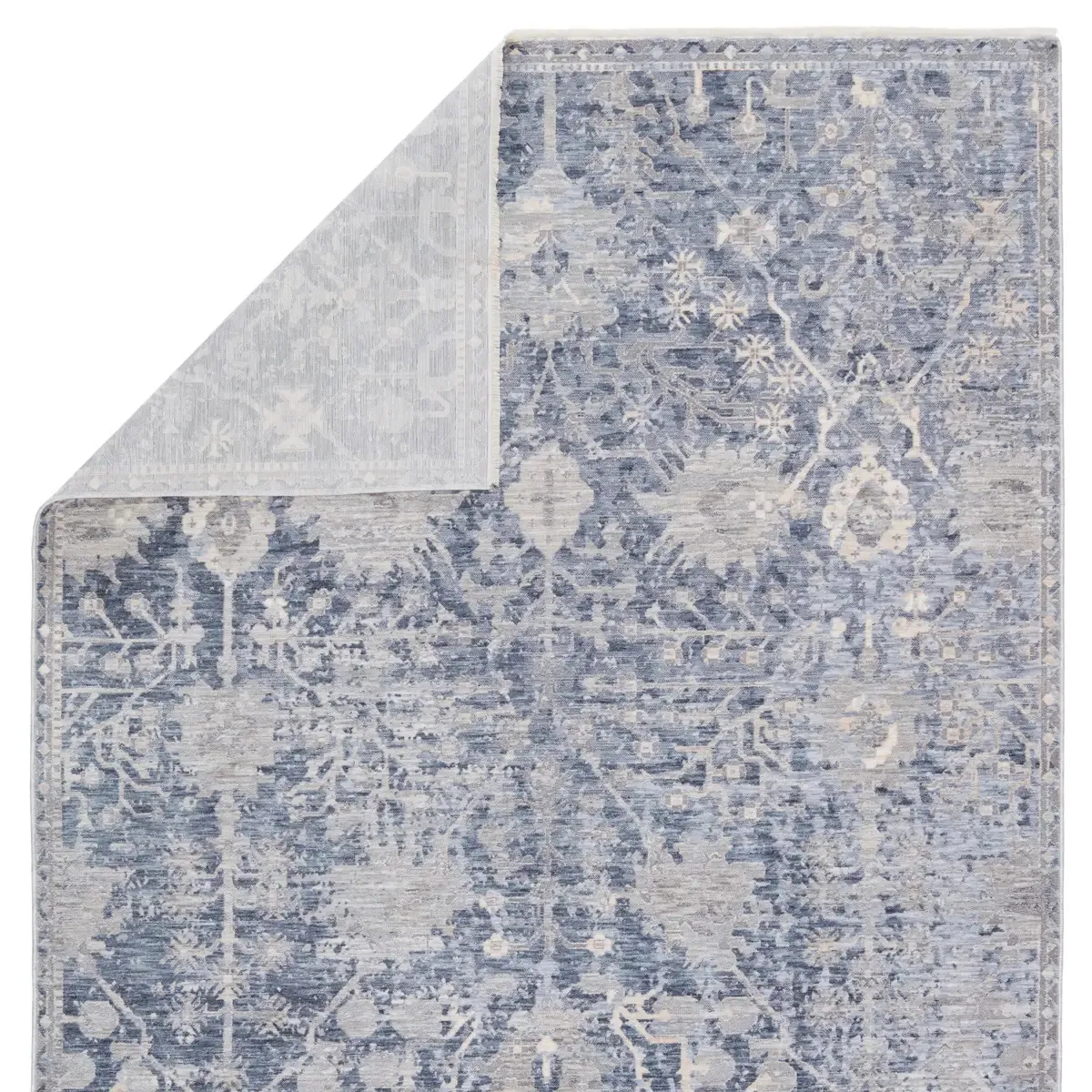 The Ballad collection features soft luxurious pile and serene, dimensional colorways created by the space-dyed yarns. The Seraph rug boasts an ornate, vintage-inspired pattern that complements transitional and contemporary spaces with grounding tones of blue and gray. Perfect for heavily trafficked spaces, this polyester rug is easy to clean and perfect for homes with pets and children.