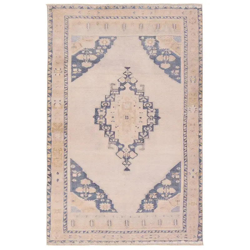 Distressed, vintage designs offer an elevated tone for the Lumal Collection. The Debolo rug features a vintage-inspired medallion, geometric border, and floral detailing in tones of tan, blue, yellow, and gray. This machine washable rug is stain resistant and easy to clean, perfect for homes with children and pets. The 100% polyester fibers allow for maximum cleanability while maintaining a soft hand.