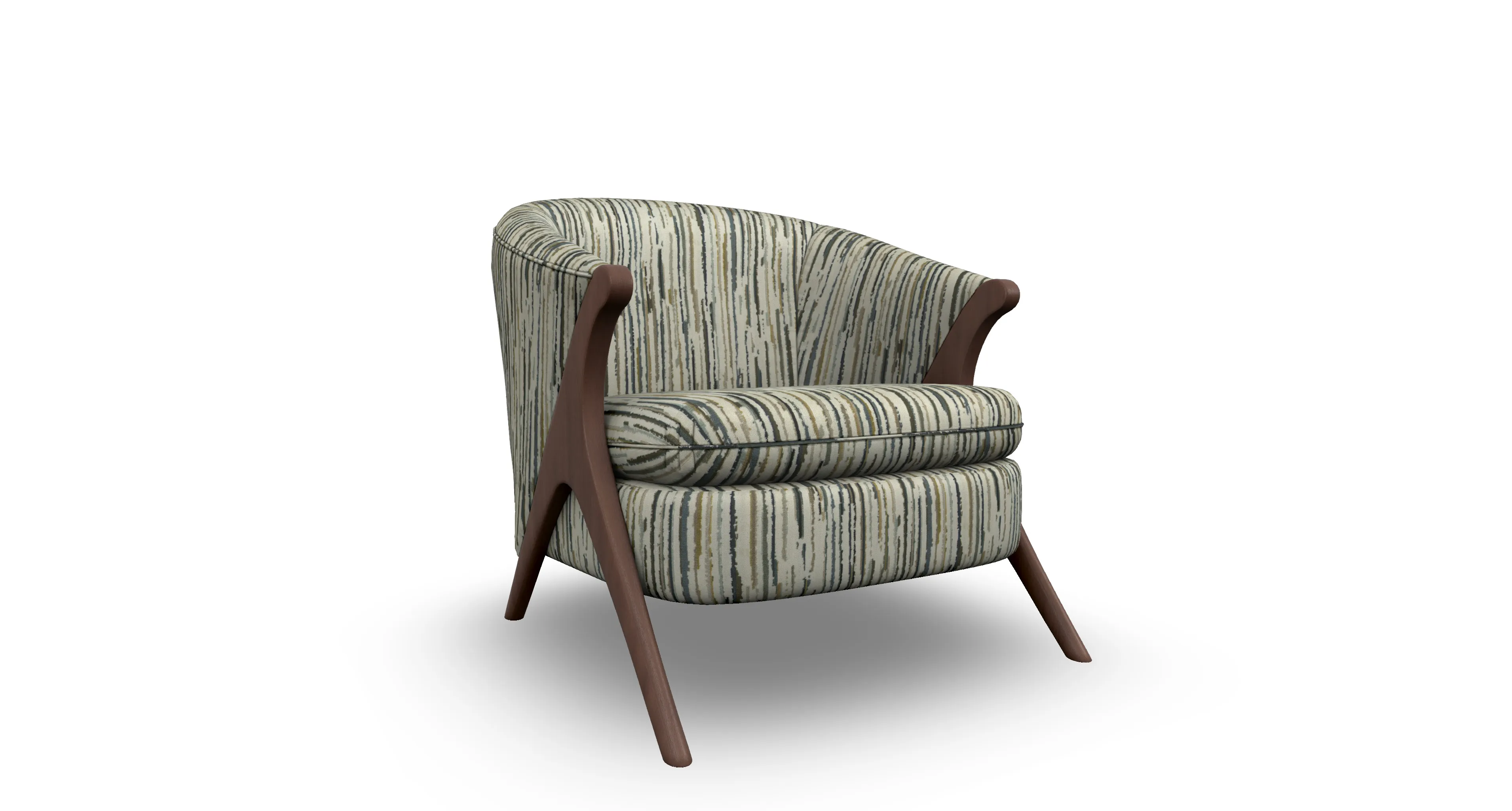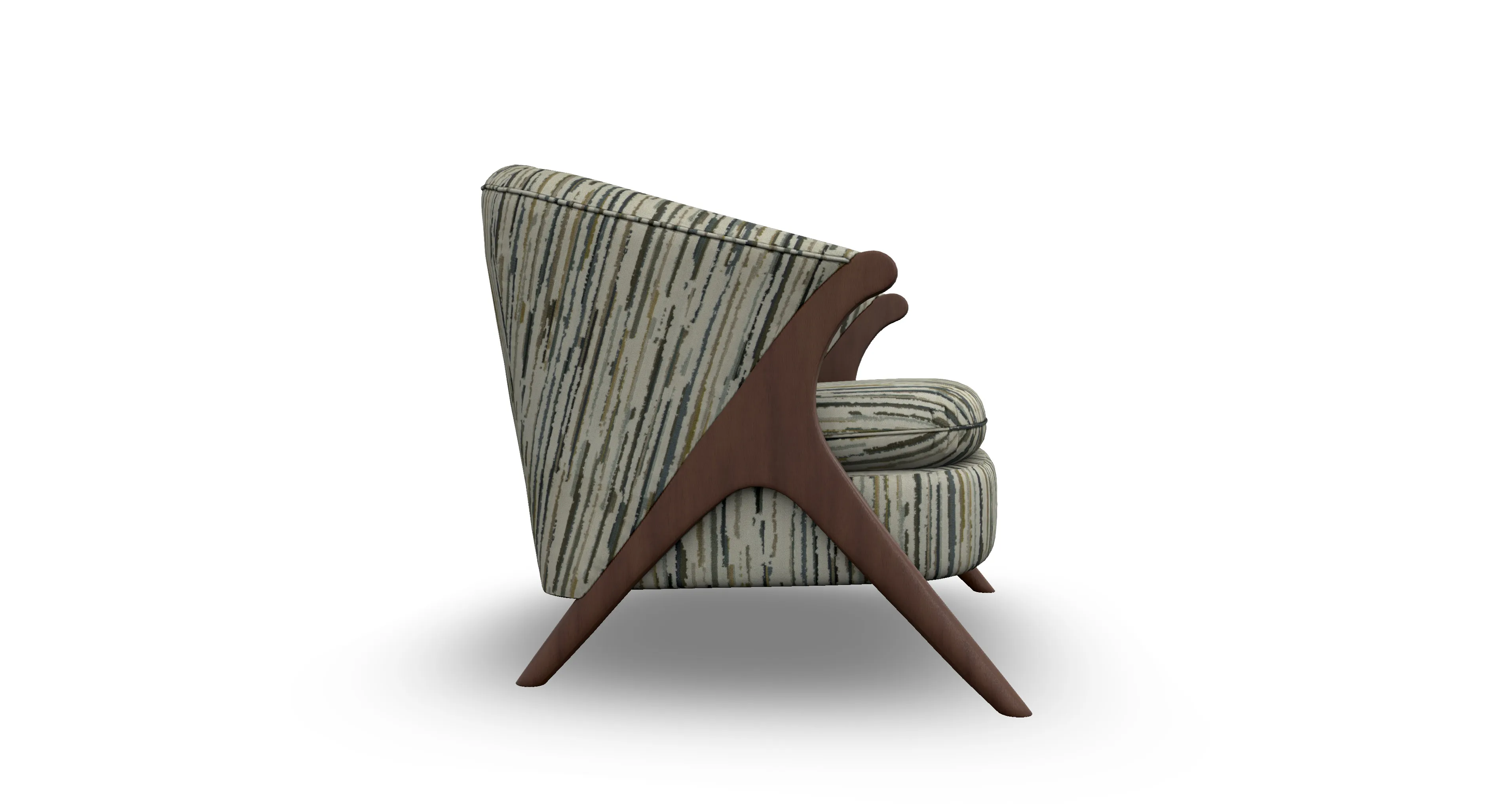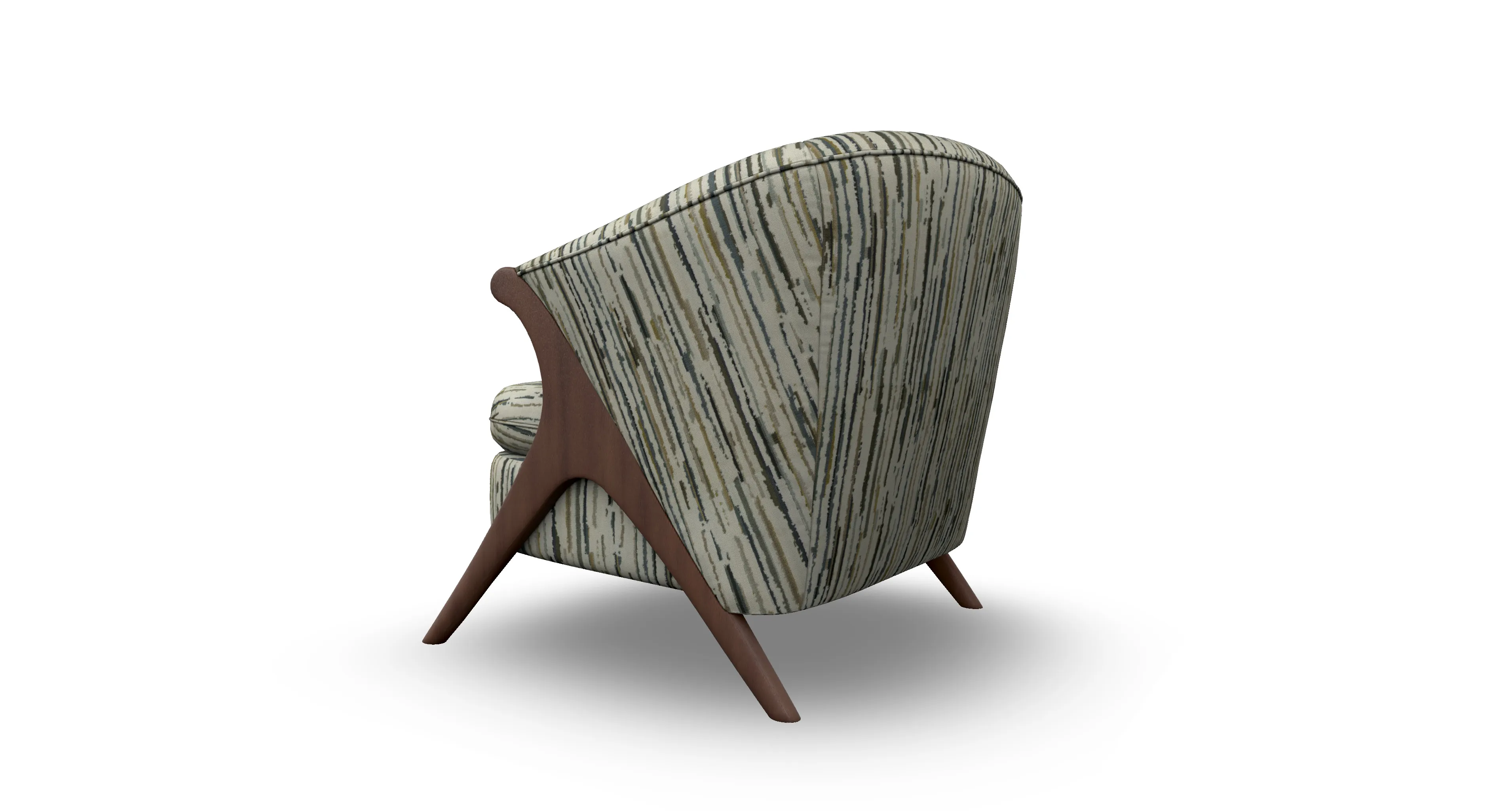 Sink back into this funky chair with bold backing. The Tatiana gives a contemporary spark to any room that needs a style upgrade. This retro accent chair comes in over 700 fabric choices for a customizable addition that will fit the style of any room. Choose a bold solid for a modern look or a neutral pattern for a more subdued feel. The sleekly designed wishbone shaped legs lends a touch of sophistication to this playful design - available in three finish choices.