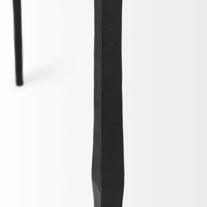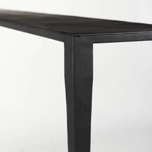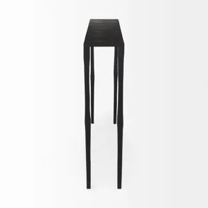 The Timothy is finished in a dark ebony black color, which adds visual contrast to a room. Fine divots and texture can be found on the console table, giving visual interest to the table and adding to the industrial look and feel.
