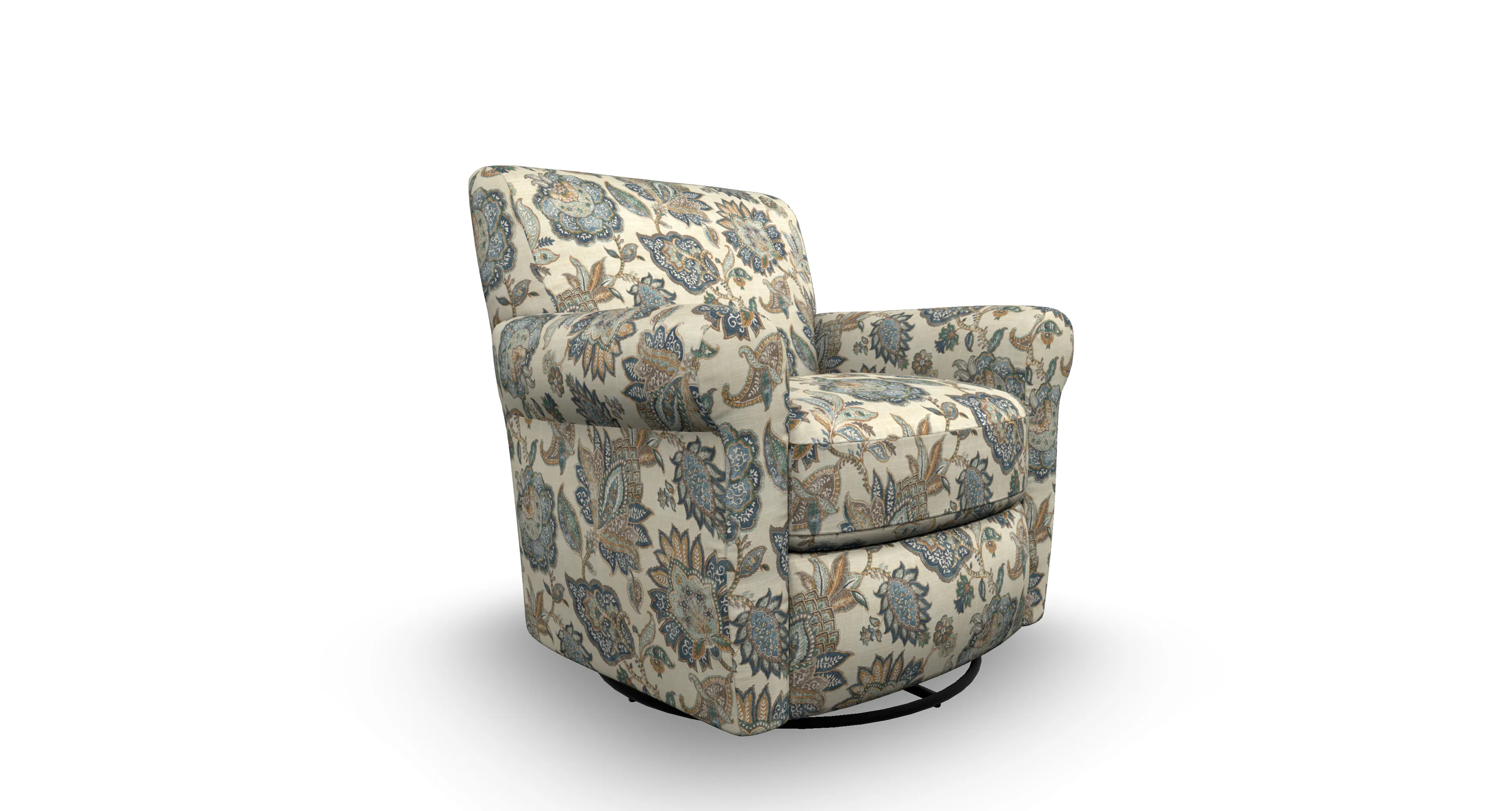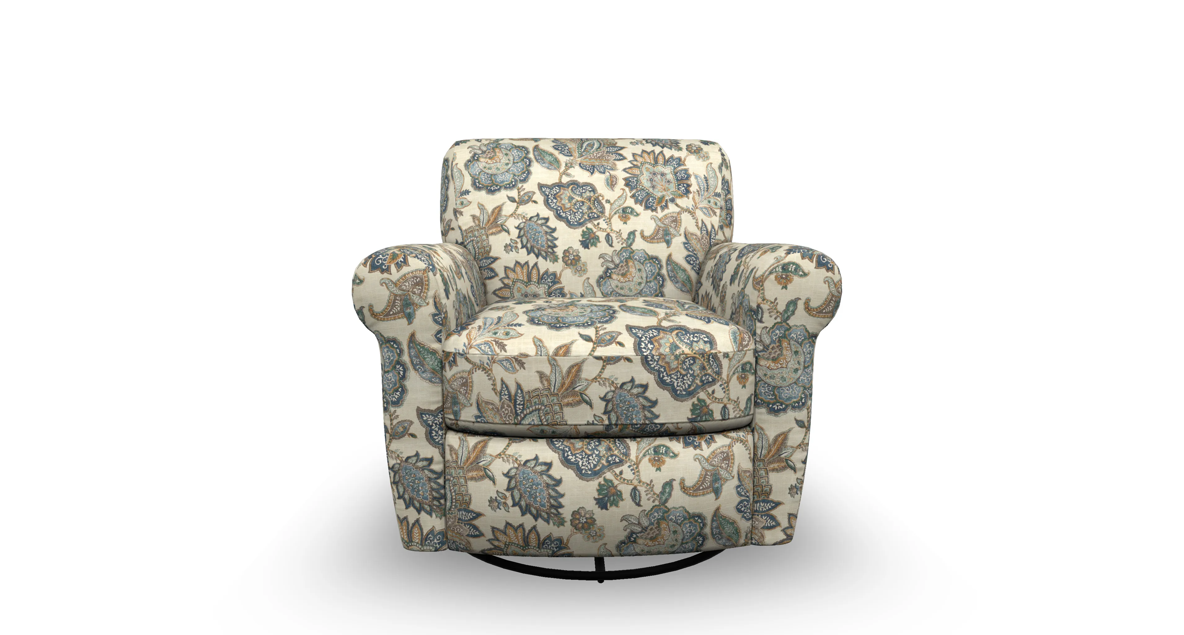 The Gemily chair has graceful, modern contours for a transitional look and size that’s at home in any room and with any décor. Designed with a reversible seat cushion that’s both soft and sturdy for long-lasting comfort and support. Choose a straight Swivel base or Swivel Glider, and from more than 700 fabric options to make it your own. She's truly a gem.